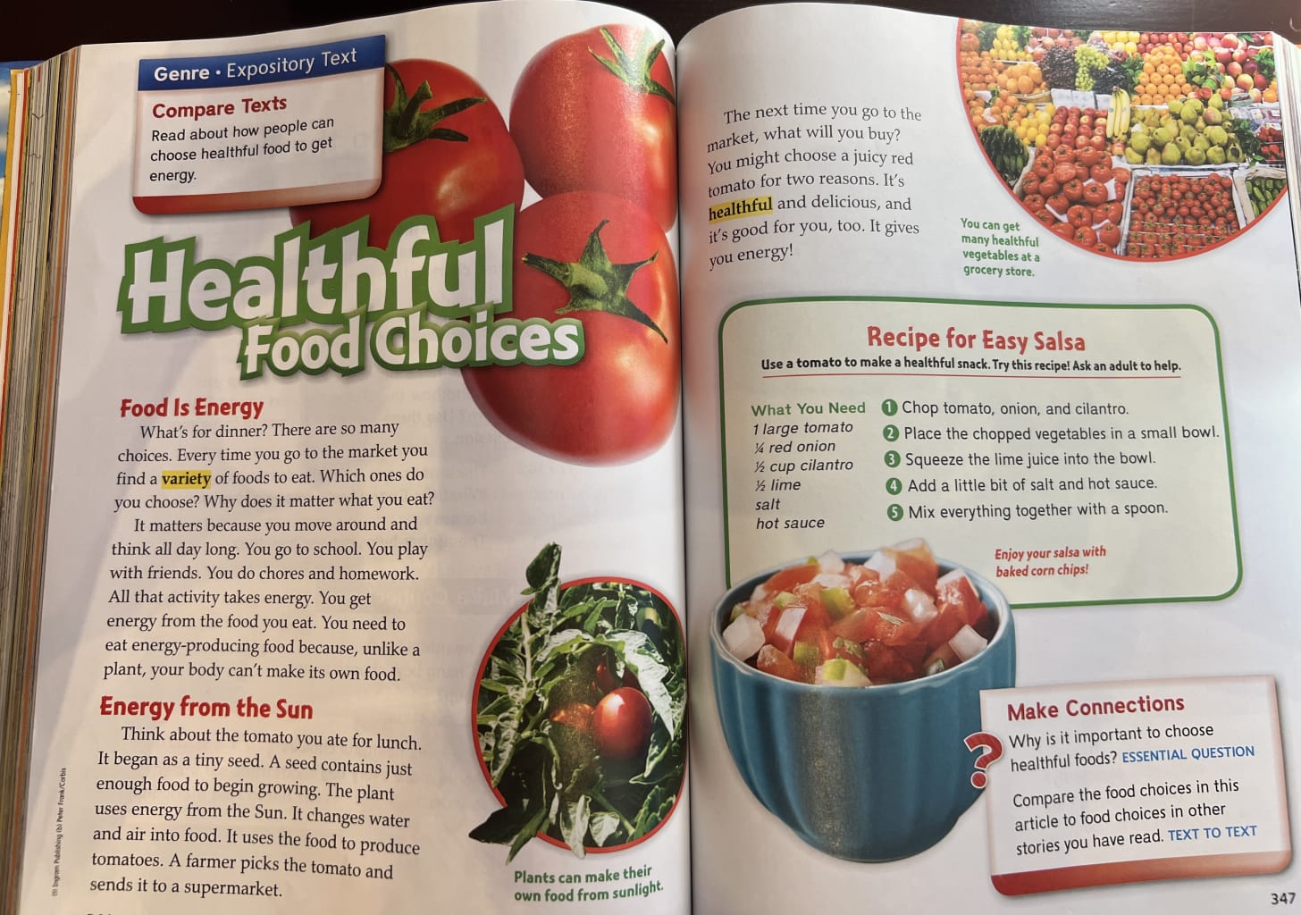 First, we’ve all found underwhelming content in basals. This text from Wonders third grade is practically a punch line. Can a text be counted as knowledge-building if it’s merely a handful of paragraphs and a salsa recipe?